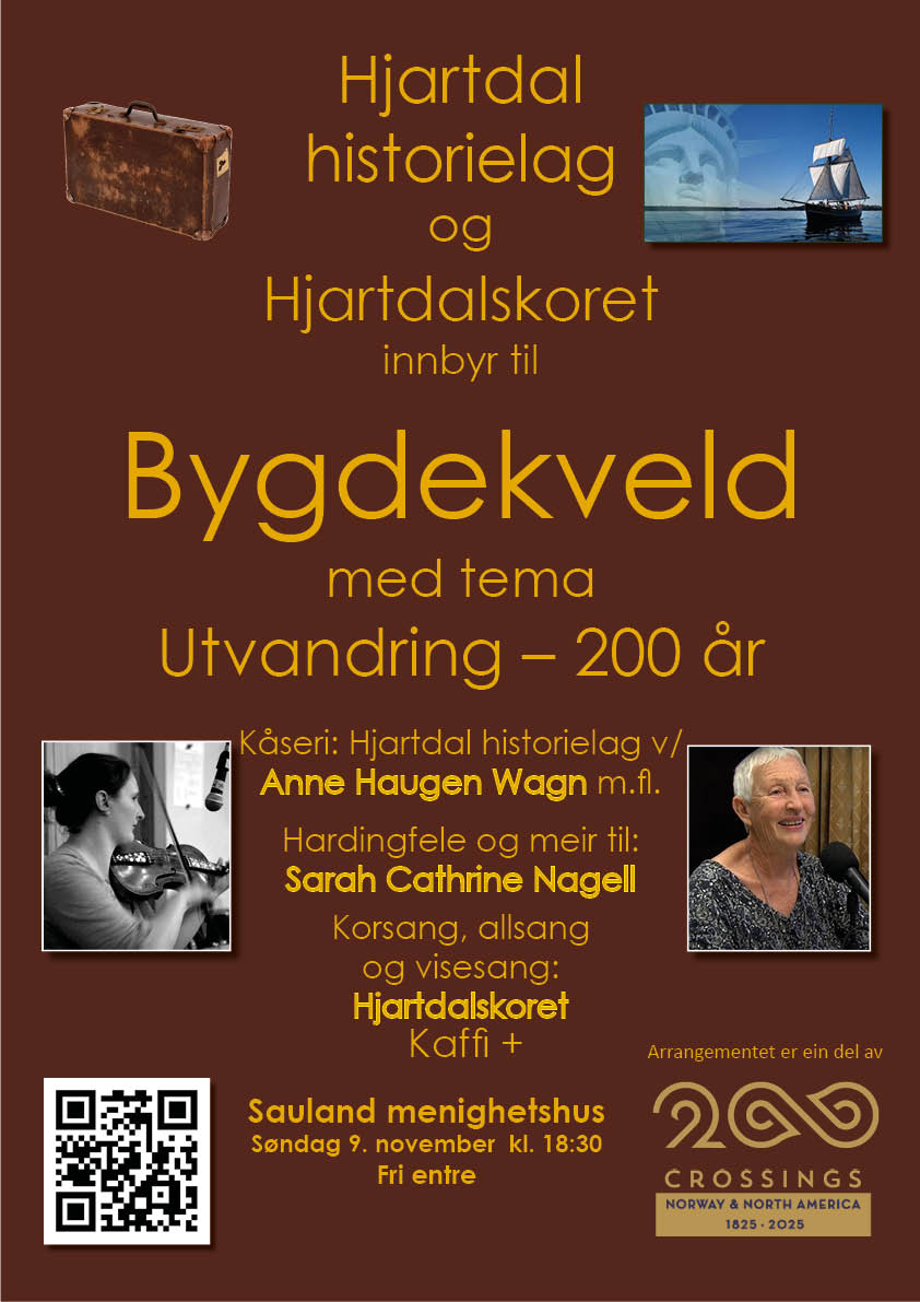 Vi vil og få ei fin overrasking i løpet av kvelden som vil avsluttast med ein konsert av Kjetil Flatland. Han syng og spelar på både saksofon og tangentar og har utdanning frå Norges Musikkhøgskule. Kjetil Flatland er av hjartdalsslekt og gav i 2015 ut den kritikarroste plata Ein song til deg. Folkemusikk og folketonen er viktig i musikken han spelar.
